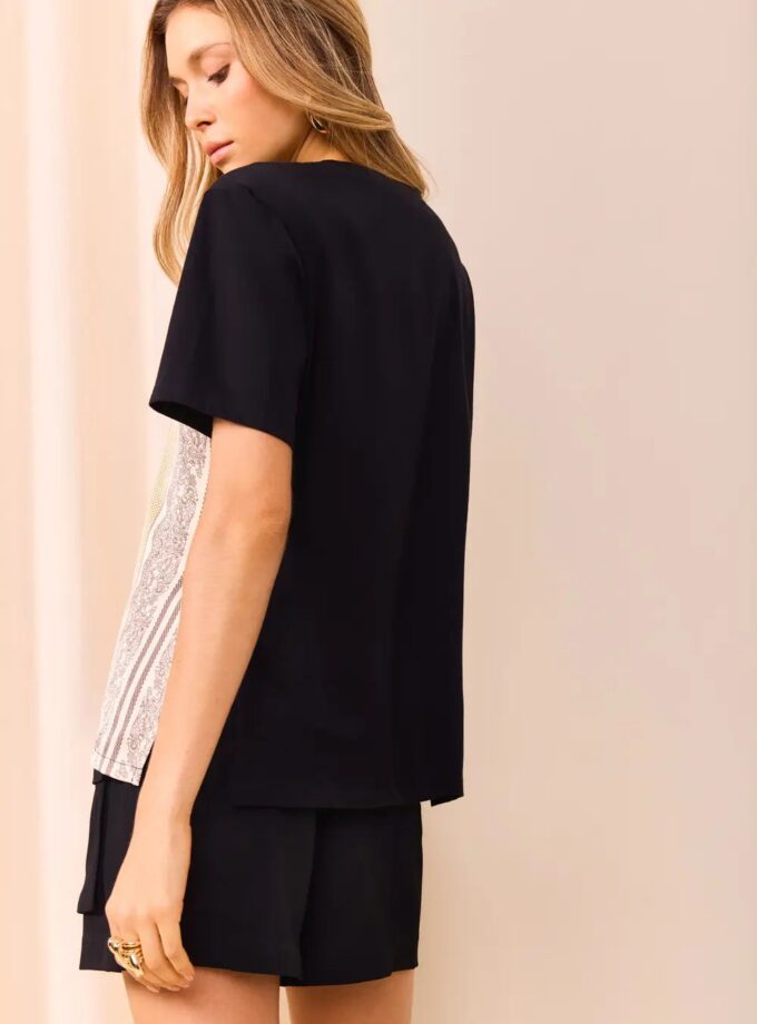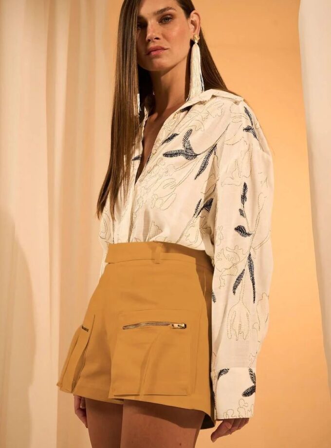 Bermuda estilosa com estampa STRIPES, ideal para composições modernas e descontraídas. Feita em tecido plano estampado, combina conforto e sofisticação em uma única peça. Acompanha lenço em estampa mix match feito em voil de algodão.