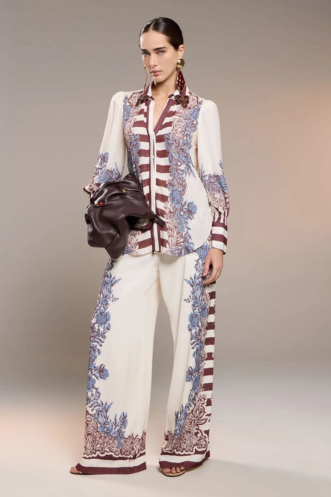 Blusa confeccionada em chiffon leve e delicado, com estampa floral clássica. Possui mangas levemente bufantes, que trazem feminilidade e movimento ao visual, além de punhos suavemente ajustados. O grande destaque fica por conta da gola, finalizada com um aviamento bordado rico em detalhes. Uma peça versátil e refinada, perfeita para produções com peças da mesma família, formando conjuntos, ou bases mais neutras.