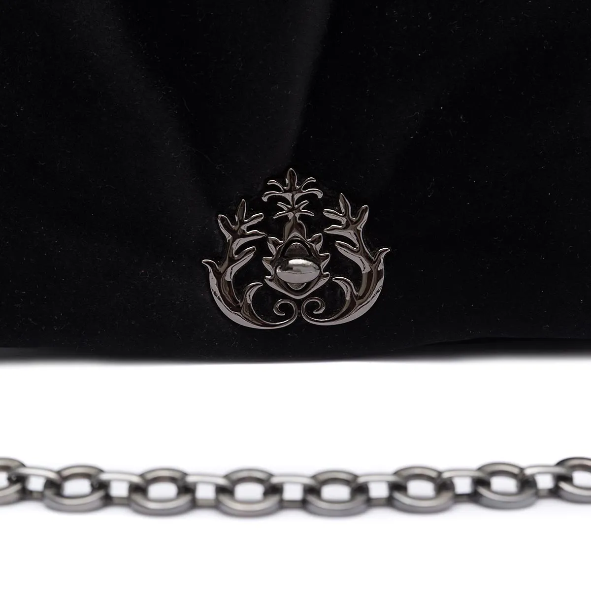 Bolsa em veludo com enchimento tendo o detalhe da marca