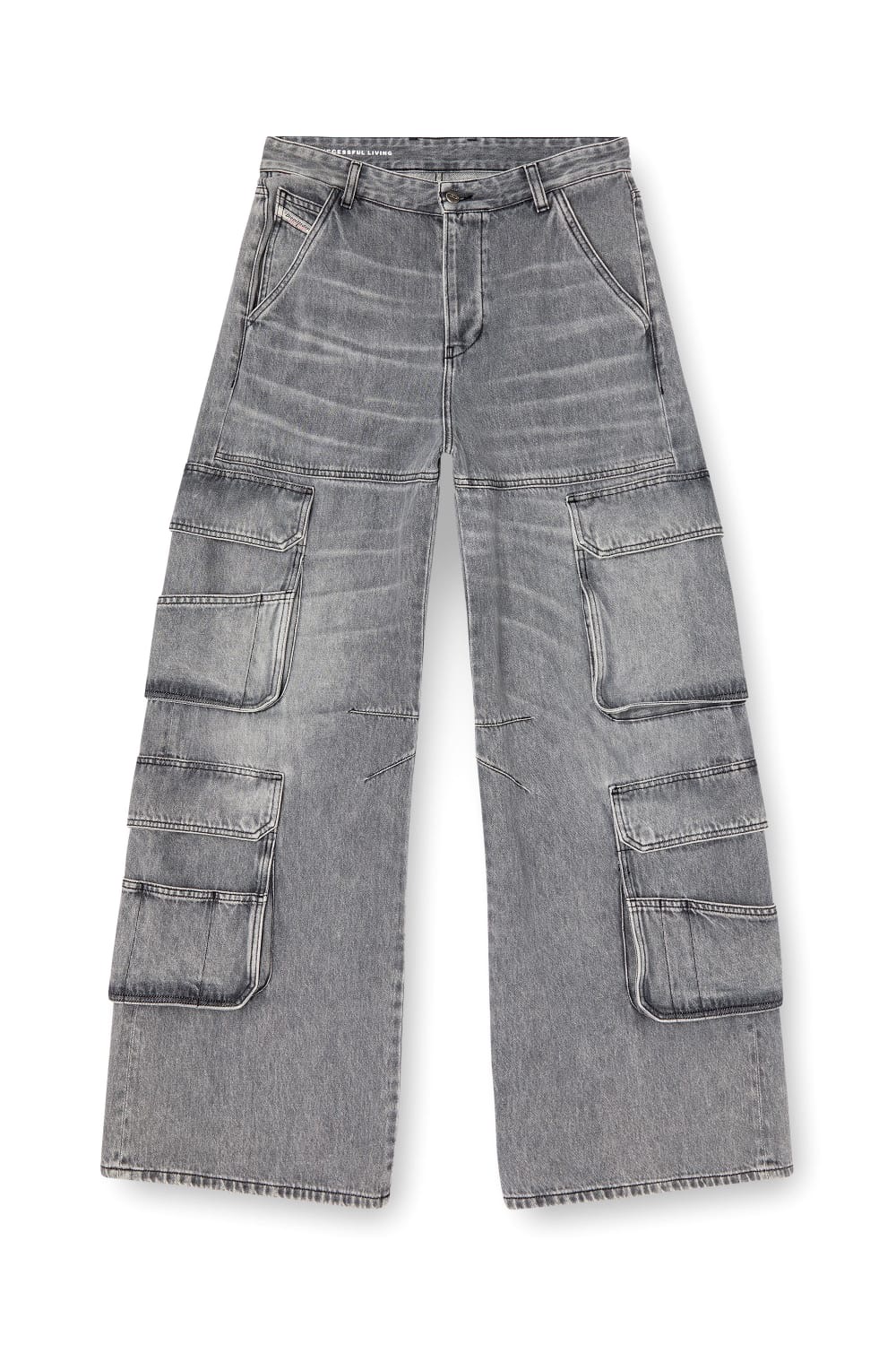 Com modelagem saruel e caimento amplo, o jeans oferece estilo contemporâneo e personalidade ao look. O design inclui cinco bolsos tradicionais e quatro bolsos cargo laterais, além de um patch de logo posterior que adiciona um toque de identidade à peça. Versátil e moderno, é ideal para compor produções casuais com autenticidade.