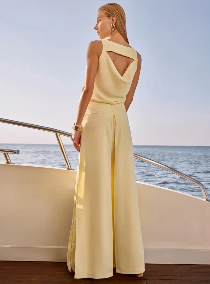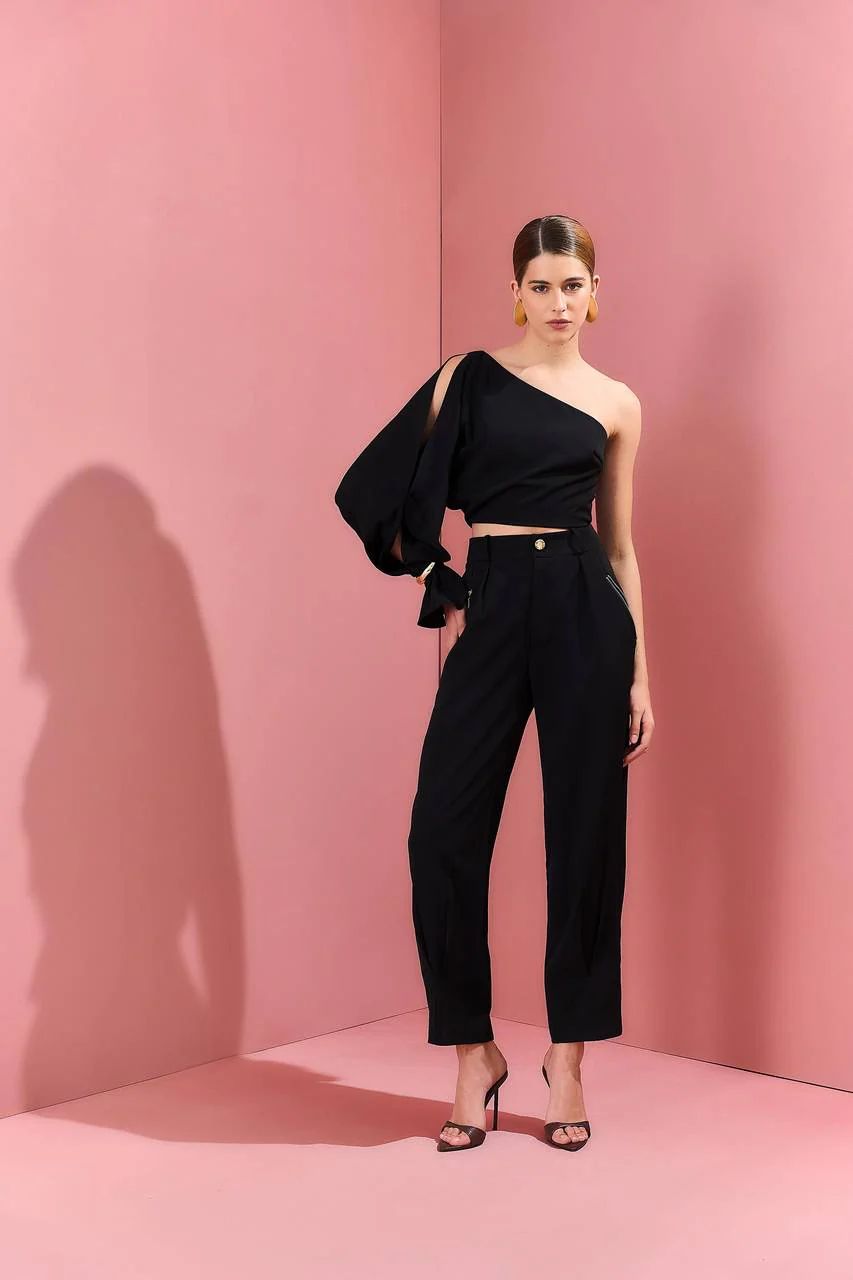 Versátil e elegante, esta calça em alfaiataria possui cintura alta e recortes estruturados que alongam a silhueta. O detalhe dos zíperes dourados laterais adiciona um toque contemporâneo à peça, equilibrando sofisticação e modernidade. O caimento reto levemente afunilado garante conforto sem perder a imponência, ideal para produções noturnas ou urbanas sofisticadas.