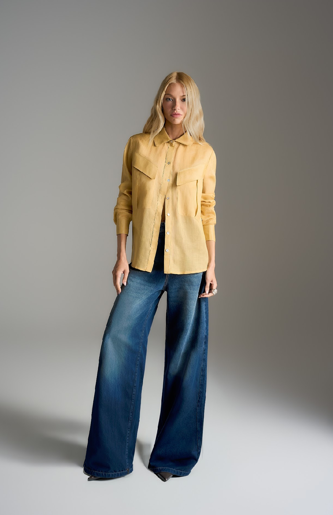 Camisa confeccionada em tecido leve e sofisticado, com toque macio e caimento fluido que garante conforto ao vestir. Possui modelagem clássica levemente solta, gola tradicional e fechamento frontal por botões, trazendo elegância atemporal à peça. Os bolsos frontais com lapela adicionam charme e um toque utilitário moderno, enquanto as mangas longas com punho ajustado completam o visual com delicadeza. Versátil e refinada, é ideal para composições que transitam facilmente do casual ao elegante, podendo ser usada tanto solta quanto por dentro da peça inferior.