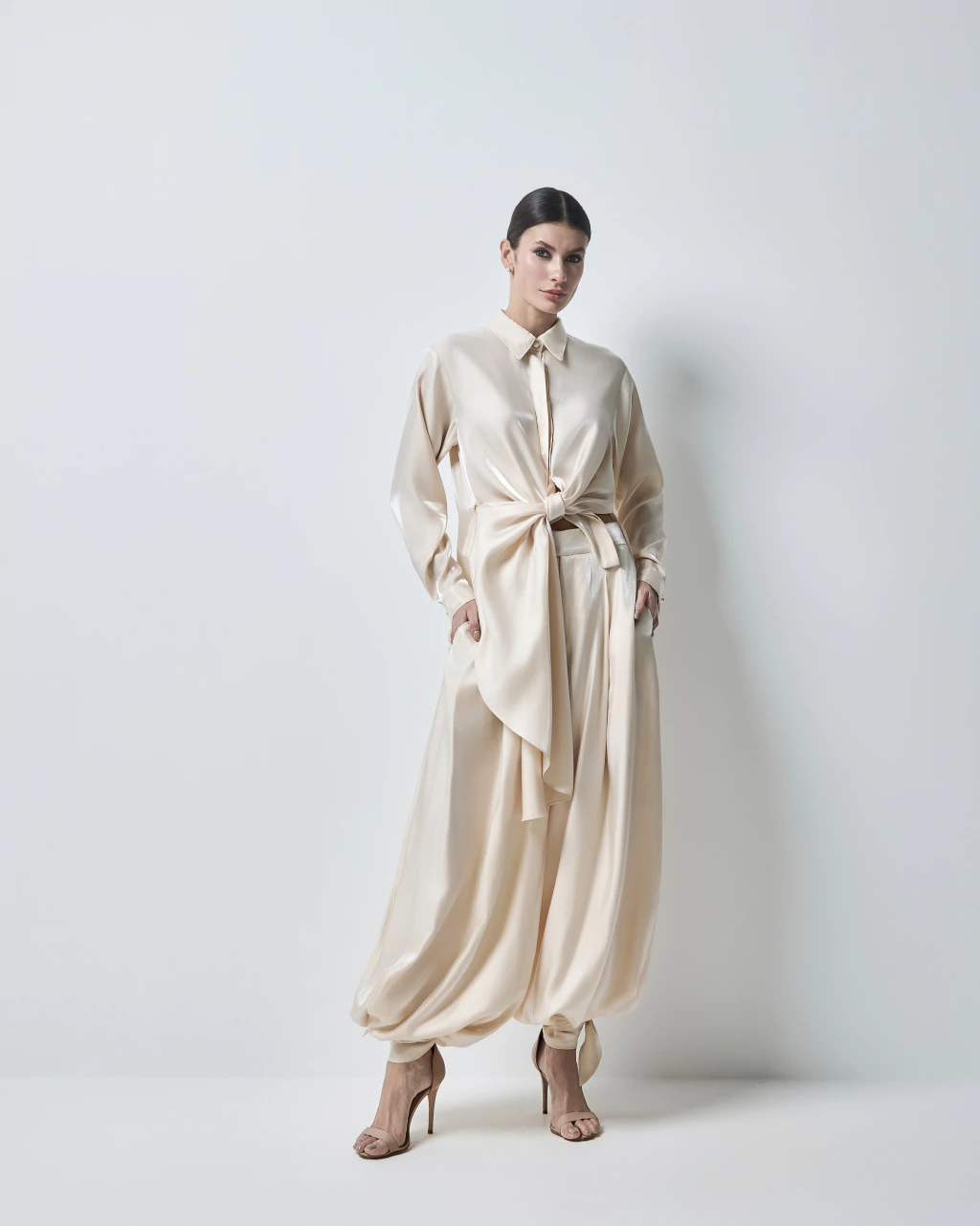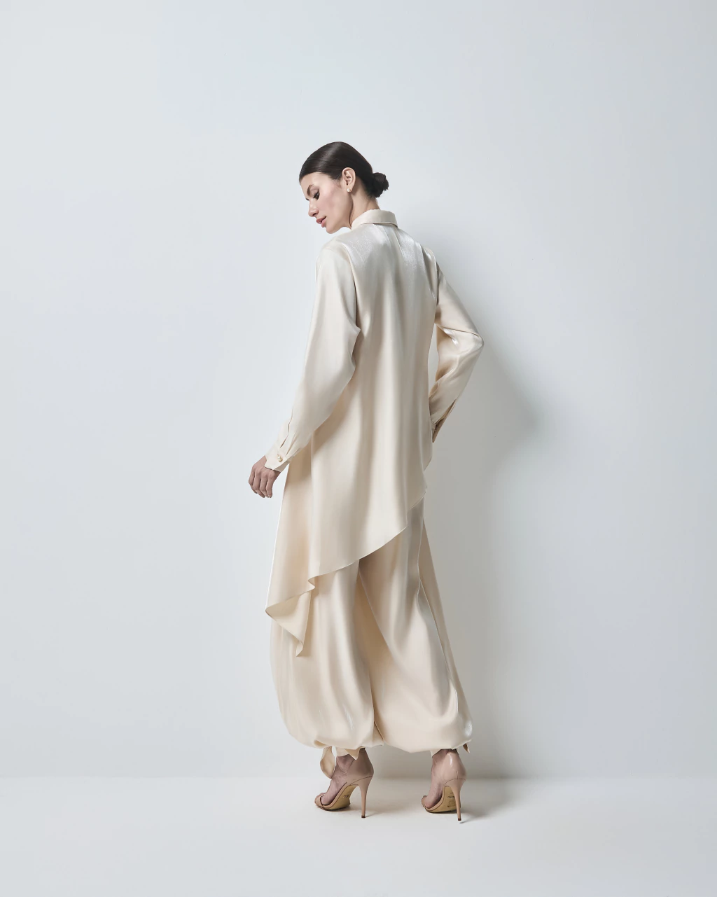 Elegante em sua essência e contemporânea em sua forma, esta camisa em raion shine traduz o equilíbrio entre fluidez, sofisticação e design autoral. Confeccionada em tecido de toque macio e brilho acetinado sutil, proporciona um caimento leve que acompanha o corpo com naturalidade, criando movimento delicado e refinado.