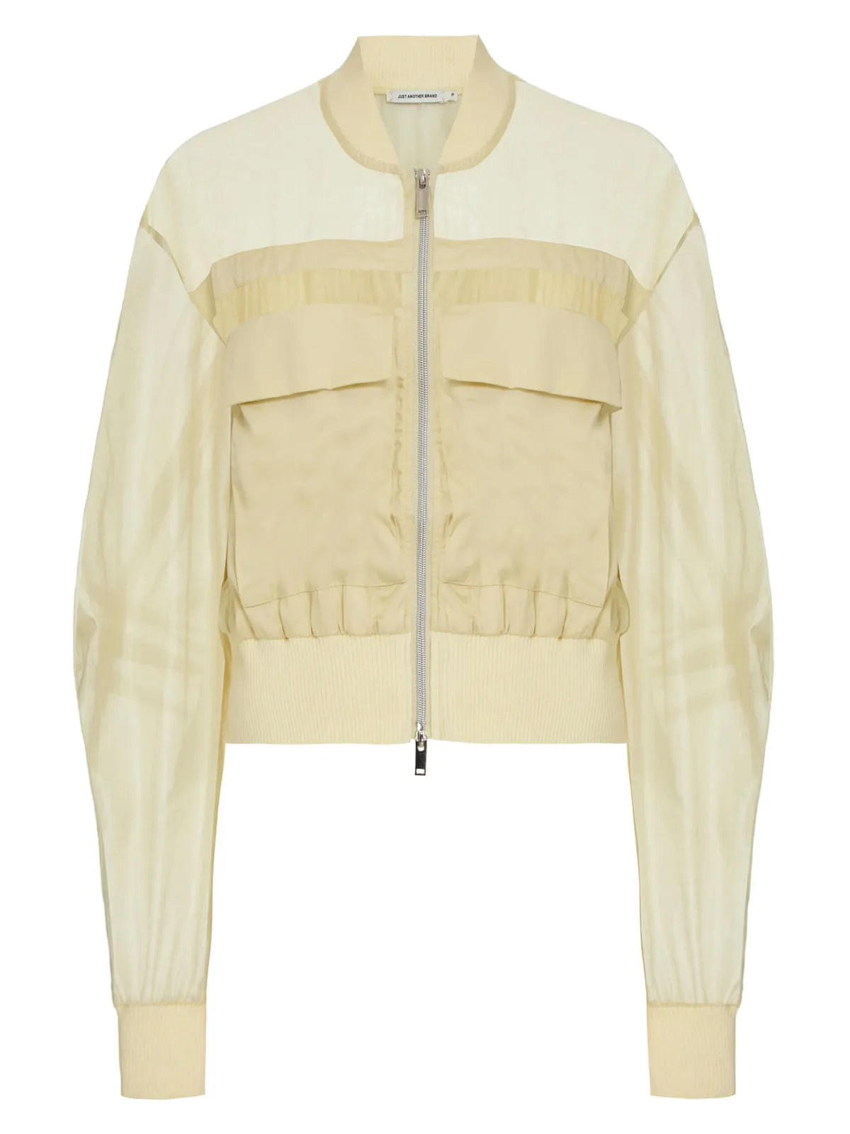 Com uma estética urbana refinada, esta jaqueta bomber une dois universos: o toque acetinado do tecido Silk Touch com a leveza e modernidade da transparência. O shape soltinho com barra e punhos em ribana garante ajuste confortável e atual, ideal para sobrepor produções básicas com personalidade.