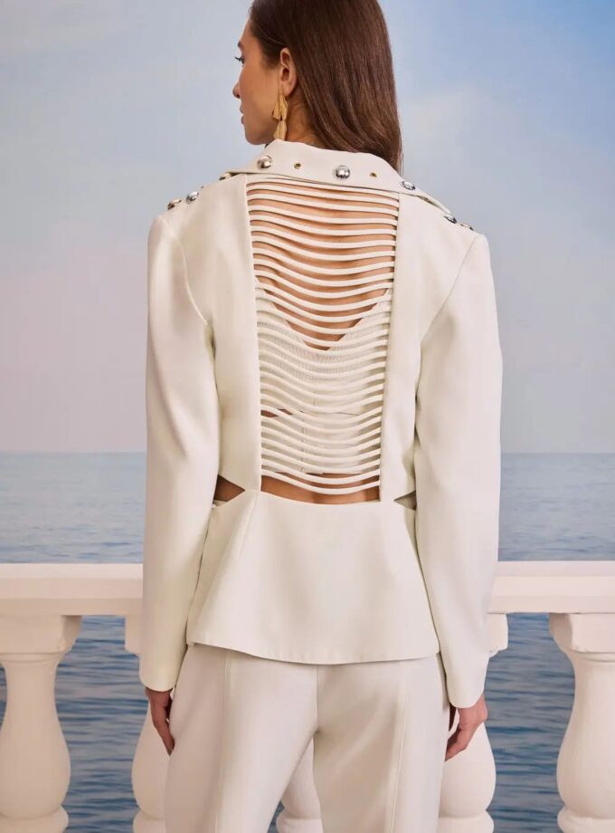 Jaqueta sarja com bordado especial nas costas , botões forrados