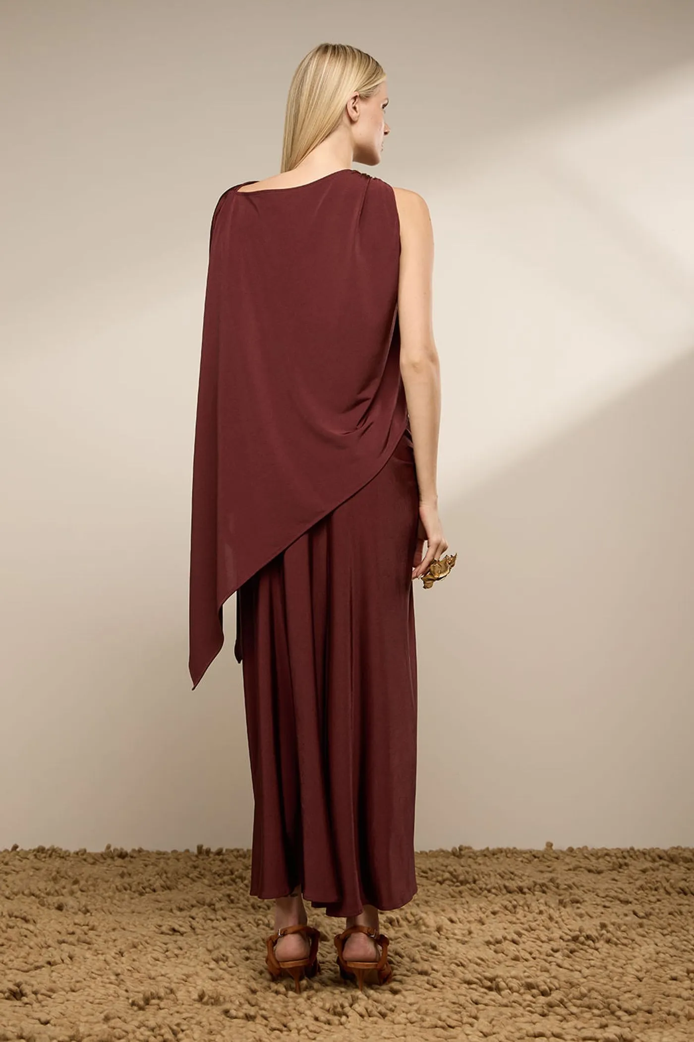 Saia maxi midi confeccionada em malha jersey, que traduz com perfeição o equilíbrio entre conforto e sofisticação. Sua modelagem foi pensada para valorizar a silhueta de forma elegante, com franzido lateral estratégico que desenha o corpo com sutileza. O destaque fica por conta da fivela dourada, que adiciona um toque de brilho e requinte ao design. A pequena fenda lateral proporciona leveza e movimento ao caminhar, enquanto o lastex na parte posterior da cintura garante melhor ajuste ao corpo, promovendo conforto sem abrir mão da elegância.