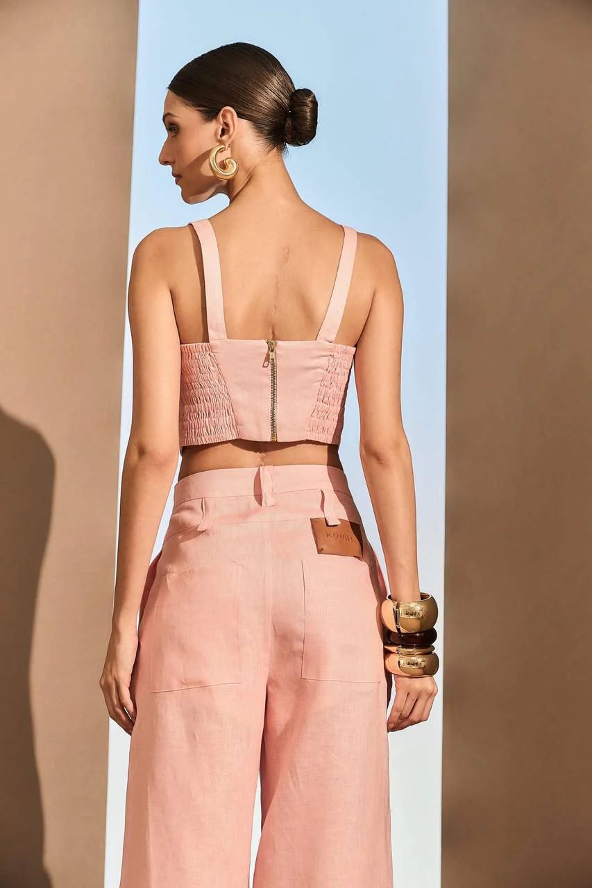 Com shape reto e alças finas, o top cropped em linho traz frescor e elegância minimalista. A estrutura encorpada valoriza a silhueta com leveza, perfeito para compor looks versáteis, do casual ao sofisticado.
