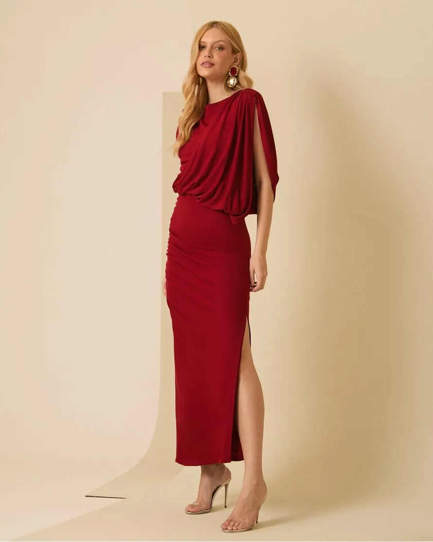 Vestido Midi Assimétrico Ruby Red , confeccionado em jersey de ryon